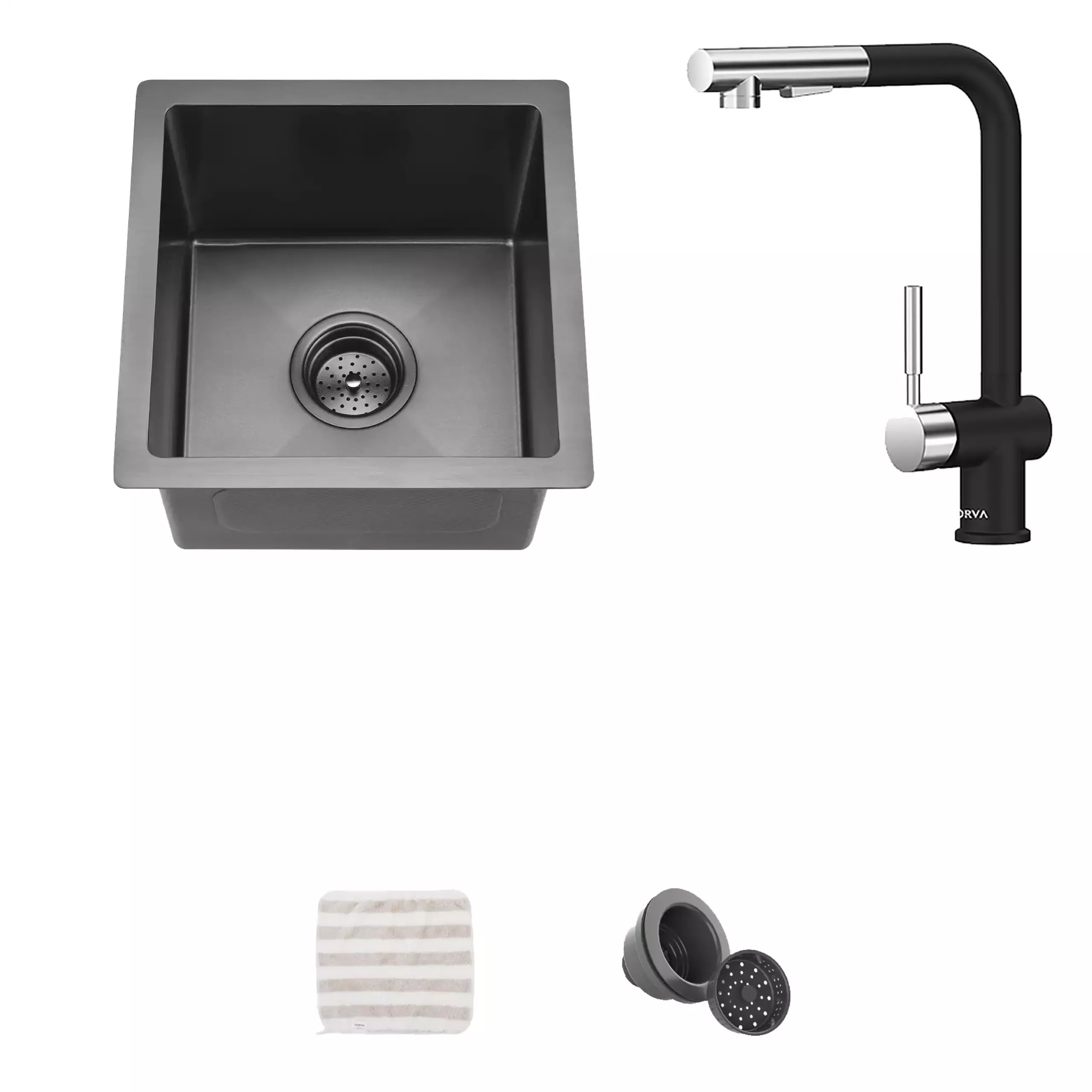 The installation-ready kit includes a sink, towel, silicone pot mat, faucet, cut-out template, mounting hardware, drain, and strainer, providing everything needed for a straightforward DIY installation. TORVA backs this sink with a 1-year limited warranty, ensuring quality and customer satisfaction for RV and van users.